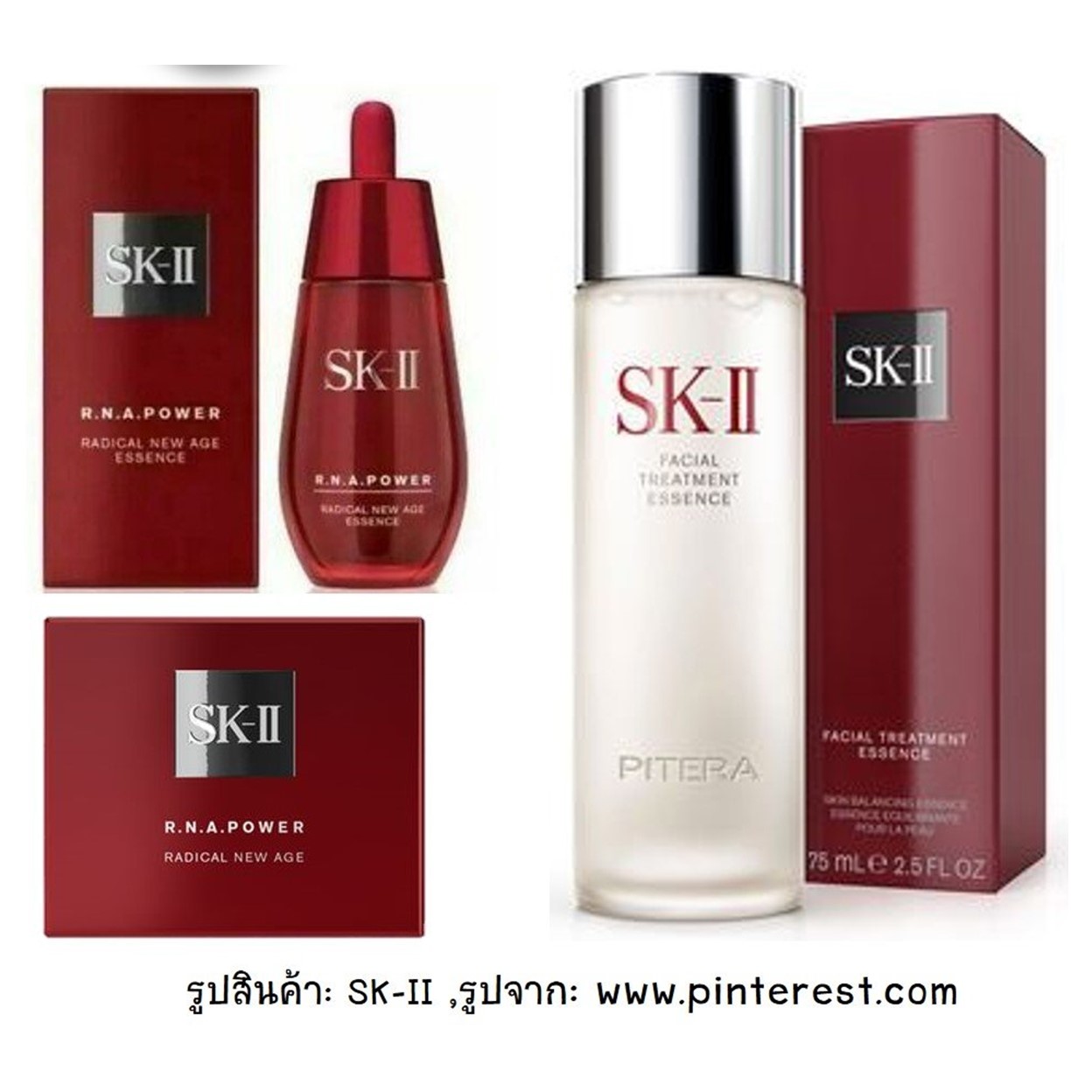 ตัวอย่าง กล่อง SK-II ถ้าพูดถึงแบรนด์นี้เมื่อใด ภาพจำของกล่องแพคเกจจิ้ง (packaging) สีแดงเลือดนกบวกกับโลโก้แบรนด์ตัวอักษรก็ลอยมาทันที
