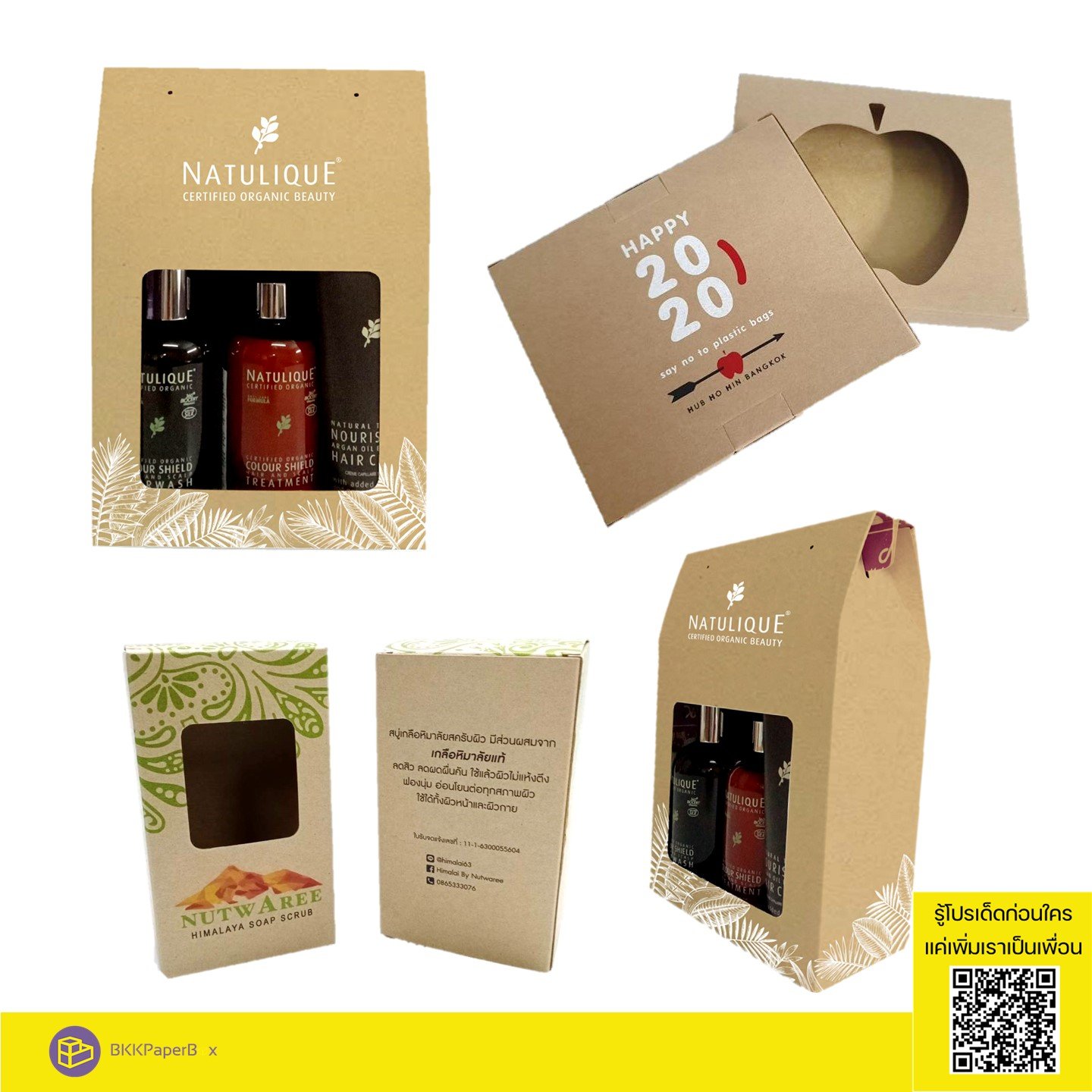 4.ตัวอย่างนี้เลือกใช้กล่องแพ็คเกจจิ้ง (packaging) โทนสีน้ำตาล ให้ความรู้สึกอบอุ่นแฝงความอ่อนโยนที่สะท้อนผ่านกล่องแพ็คเกจจิ้งได้ดีทีเดียว