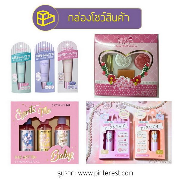 กล่องโชว์สินค้า คือ กล่องแพคเกจจิ้ง (packaging) ที่เจาะหน้าต่าง จะปะพลาสติกหรือไม่ก็ได้ และทำได้กับทุกทรงกล่อง เพื่อเผยให้เห็นสินค้าด้านใน เหมาะกับกล่องเครื่องสำอางที่ต้องการให้เห็นเนื้อผลิตภัณฑ์ เช่น กล่องลิปสติก กล่องน้ำหอม กล่องครีม กล่องเซรั่ม เป็นต้น