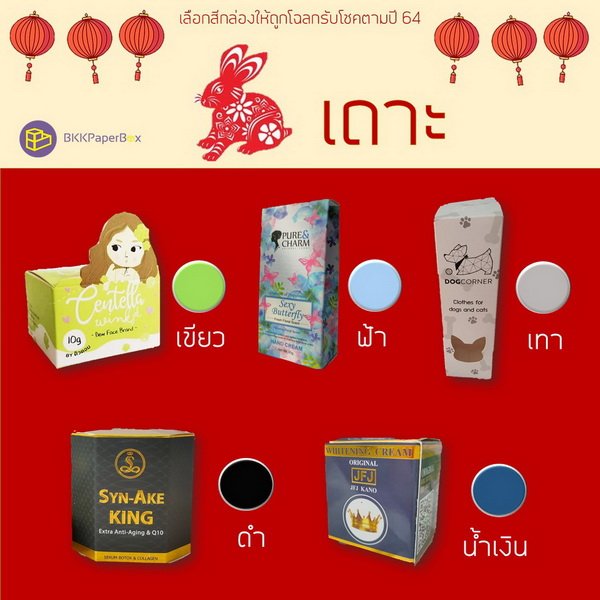 กล่องแพจเกจจิ้ง (packaging) สีมงคลสำหรับคนเกิดปีเถาะ (ปีกระต่าย)