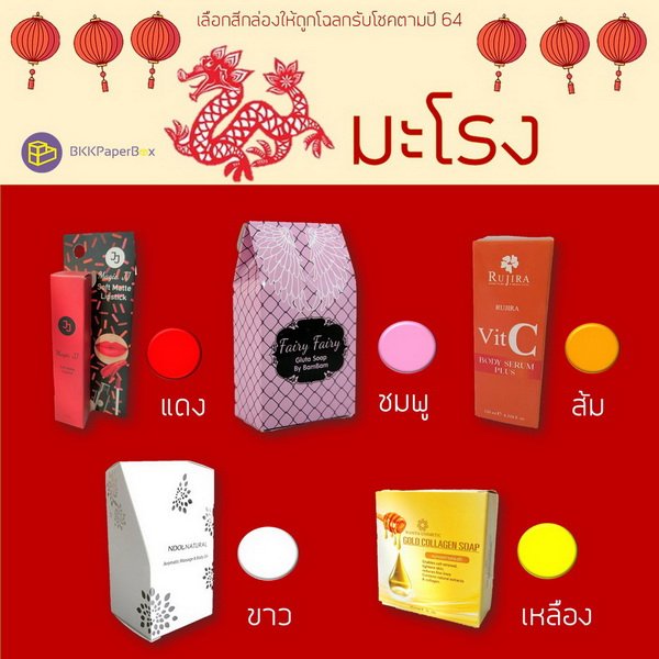 กล่องแพจเกจจิ้ง (packaging) สีมงคลสำหรับคนเกิดปีมะโรง (ปีมังกร)