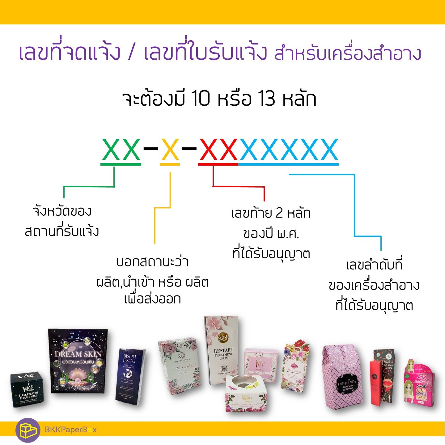 ในงานออกแบบกล่องแพคเกจจิ้ง (Packaging) ที่ต้องใส่ข้อมูลสินค้า มักมีลูกค้าสอบถาม BKKPaperBox มาว่า อย. กับ เลขที่จดแจ้ง สำหรับสินค้าเครื่องสำอาง ต้องใช้แบบไหน และมีความต่างกันอย่างไร เรามาศึกษาข้อมูลนี้กันค่ะ