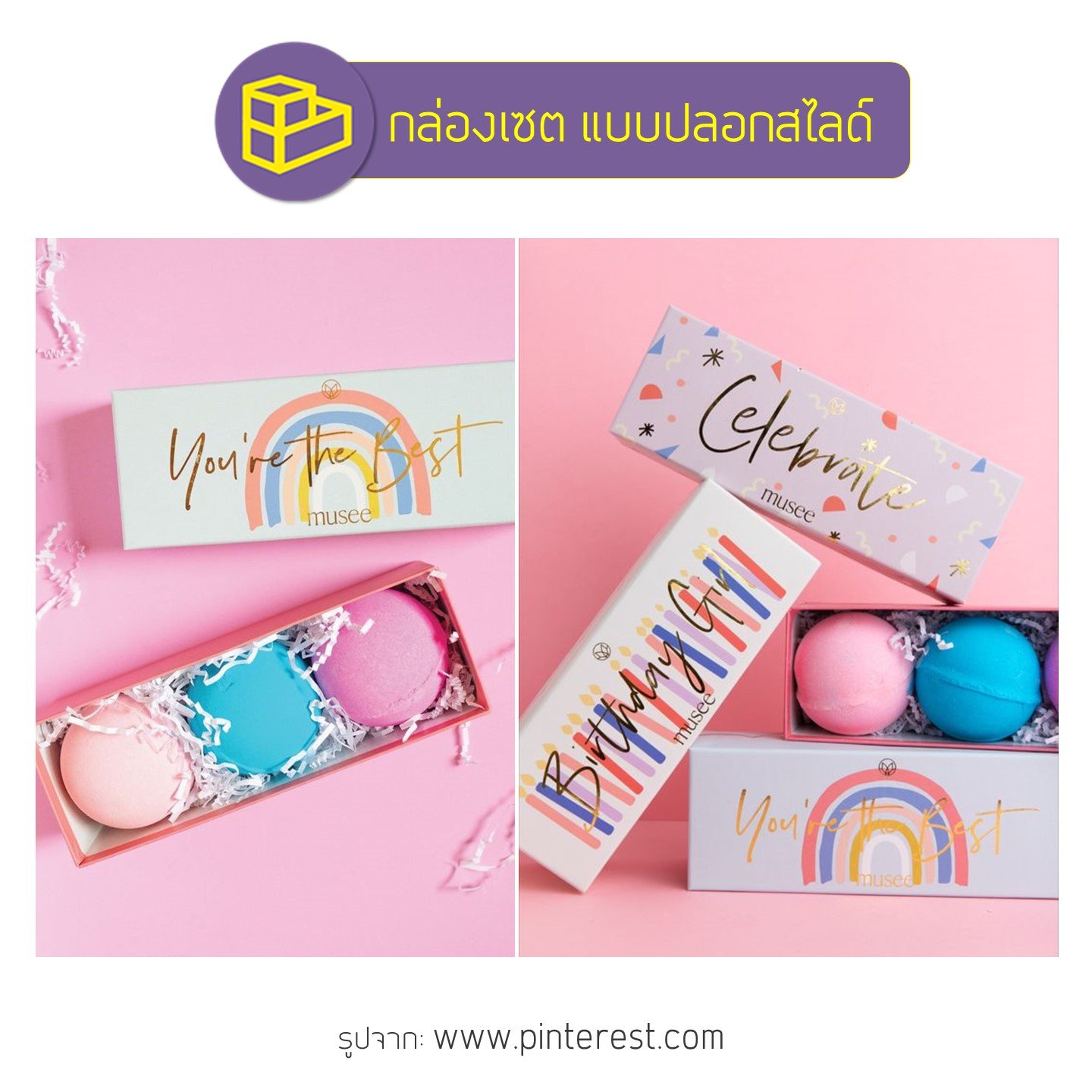 กล่องเซต แบบปลอกสไลด์ คือ กล่องแพคเกจจิ้ง (packaging) ทรงนี้จะเปิดในลักษณะเลื่อนออกด้านข้าง จึงเรยกว่า ปลอกสไลด์ และจะมีถาดสำหรับวางสินค้าด้านใน เหมาะกับแบรนด์ที่ต้องการความพรีเมี่ยมขึ้นมาหน่อย ถ้าต้องการให้ตัวสินค้าไม่เลื่อนไปมา สามารถเพิ่มอินเนอร์ถาดล็อกสินค้าได้ค่ะ