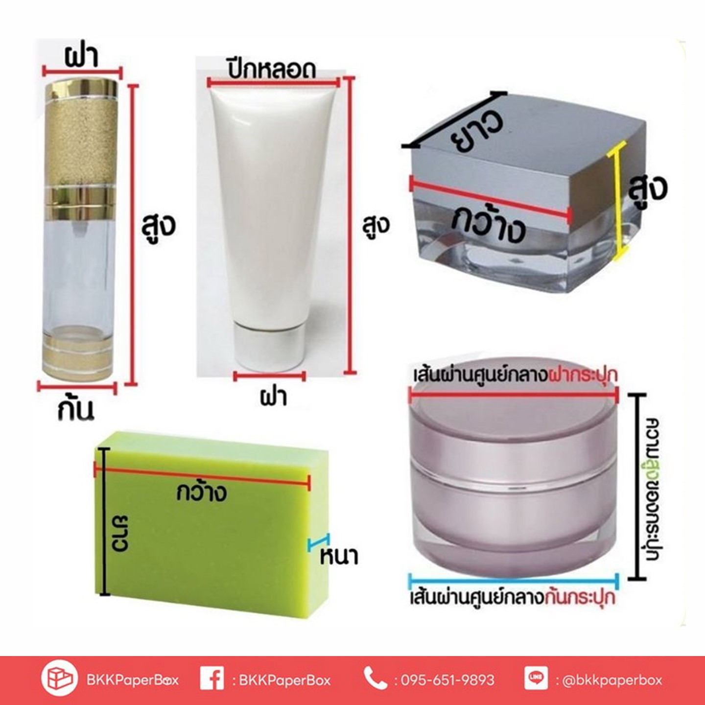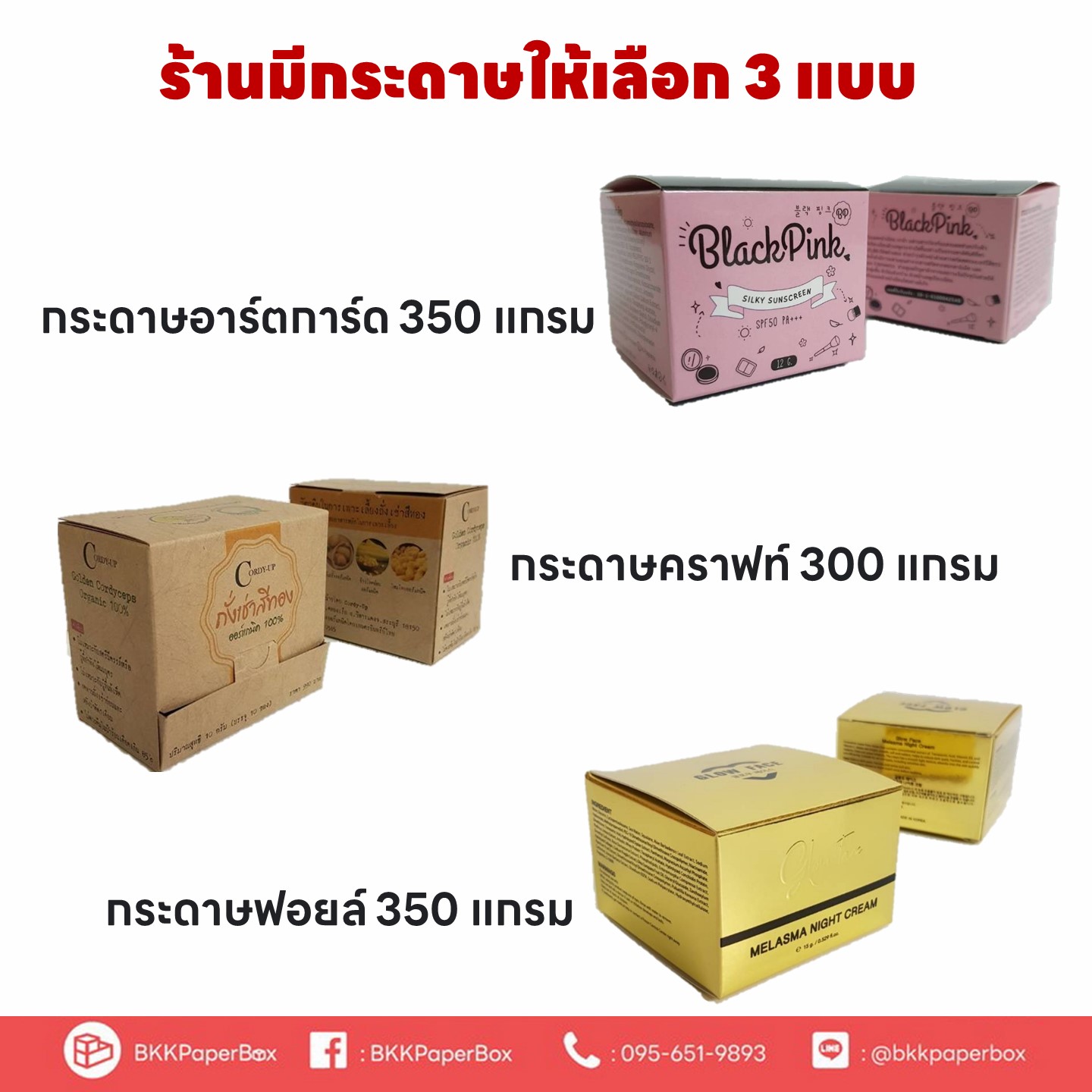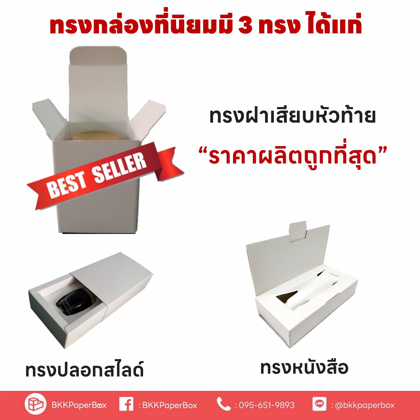 ราคาของทรงกล่องแต่ละทรง จะปรับตามขนาดสินค้าจริง รวมถึงความยาก-ง่าย ของแพทเทิร์นกล่อง อยากทราบว่า สินค้าและงบประมาณของเราเหมาะกับกล่องทรงไหน แอดไลน์ Line ID : @bkkpaperbox แล้วส่งรูปสินค้าจริง พร้อมแจ้งขนาดสินค้า กว้าง xยาว x สูง cm ให้แอดมินคำนวณราคาผลิตคร่าวๆ ได้เลย