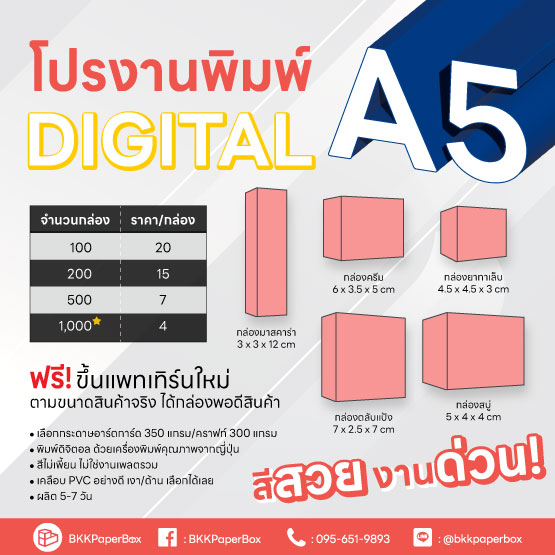 เดือนนี้ BKKPaperBox จัดโปรสำหรับเจ้าของแบรนด์มือใหม่ หากต้องการข้อมูลเพิ่มเติม หรือต้องการดูตัวอย่างงาน ทัก Line ID: @bkkpaperbox ขอดูโปรโมชั่นจากแอดมินได้เลย