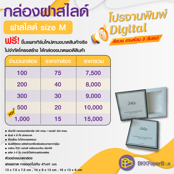 โปรโมชั่น งานพิมพ์ Digital ฝาสไลด์ size M เริ่มต้น 100 ใบ