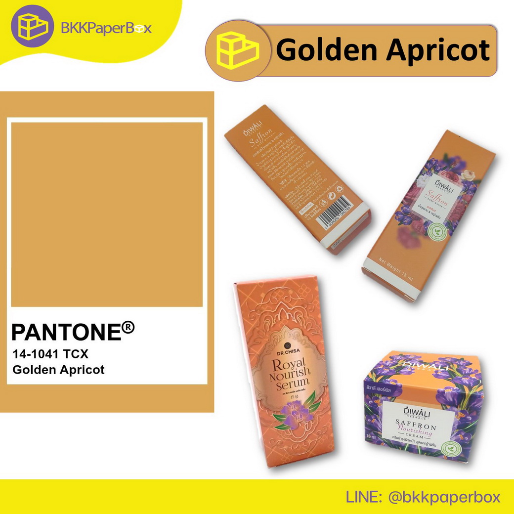 สีส้มแอปริคอต ให้ความรู้สึกหวนถึงอดีต อบอุ่น รู้สึกสนุกสนาน และความคิดสร้างสรรค์ เป็นสีที่เหมาะกับการนำมาใช้ในธุรกิจแฟชั่นเครื่องแต่งกาย งานถักทอ งานออกแบบภายใน และงานแพ็คเกจจิ้งกล่องอาหารเสริม กล่องชา กล่องครีม กล่องเซรั่ม