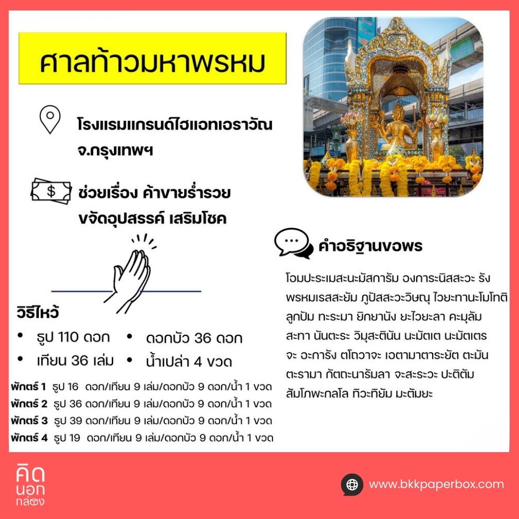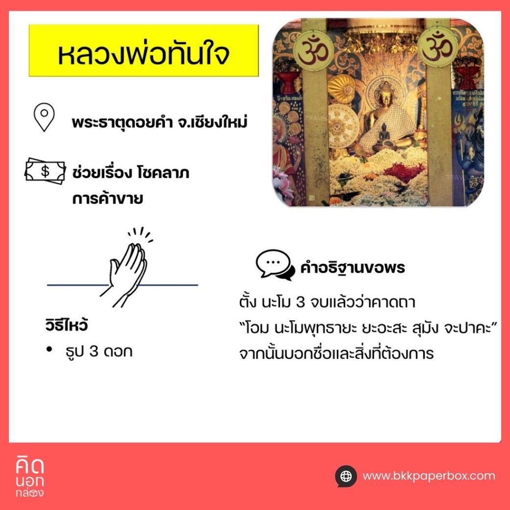 ในการทำธุรกิจยุนี้ไม่ได้ด้วยเล่ห์ก็ต้องได้ด้วยกล ว่าไหมคะ? จริงอยู่ที่การทำธุรกิจต้องมีความรู้ ประสบการณ์และมีความรู้ กิจการค้าขายของเราจึงจะเจริญรุ่งเรือง แต่....การไหว้พระ ขอพร ทำบุญก็เป็นอีกส่วนหนึ่งที่จะช่วยให้เราอุ่นใจในการทำธุรกิจมากขึ้นนะคะ อย่างน้อยเราได้กำลังใจ มีแรงยึดเหนียวจิตใจ ส่งพลังงานดีๆ ในการทำงานของเรา หากใครที่อยากไหว้พระ ขอพร ช่วยทำให้ธุรกิจขายดิบขายดี มารวมกันที่หน้าจอตรงนี้เลยค่ะ BKKPaperBox รวบรวม 5 สถานที่ศักดิ์สิทธิ์มารีวิวที่ไหว้ของแม่ค้าสายมู ไหว้แล้วปัง ไหว้แล้วเฮง มีที่ไหนกันบ้างไปดูกันค่ะ