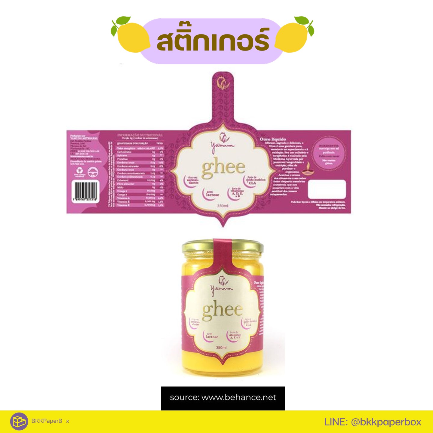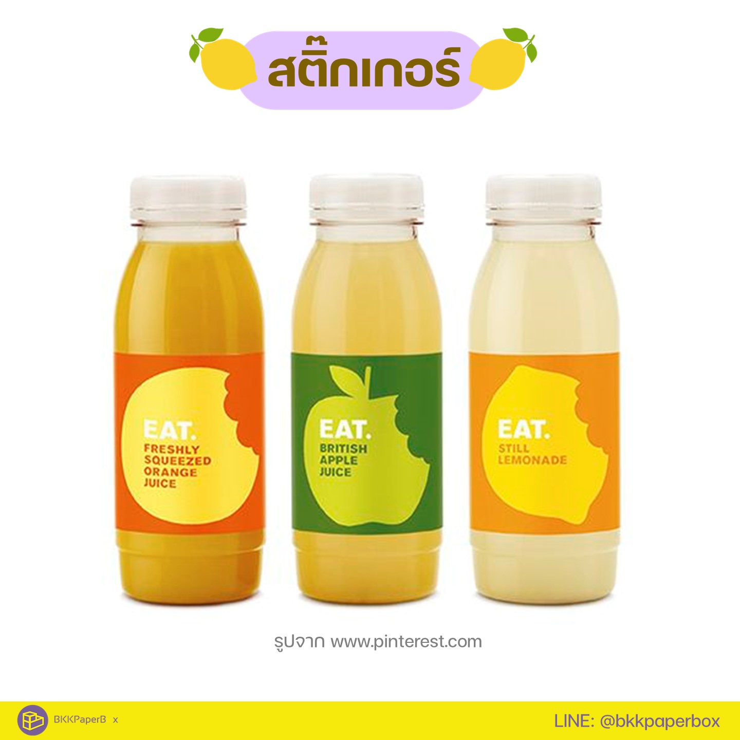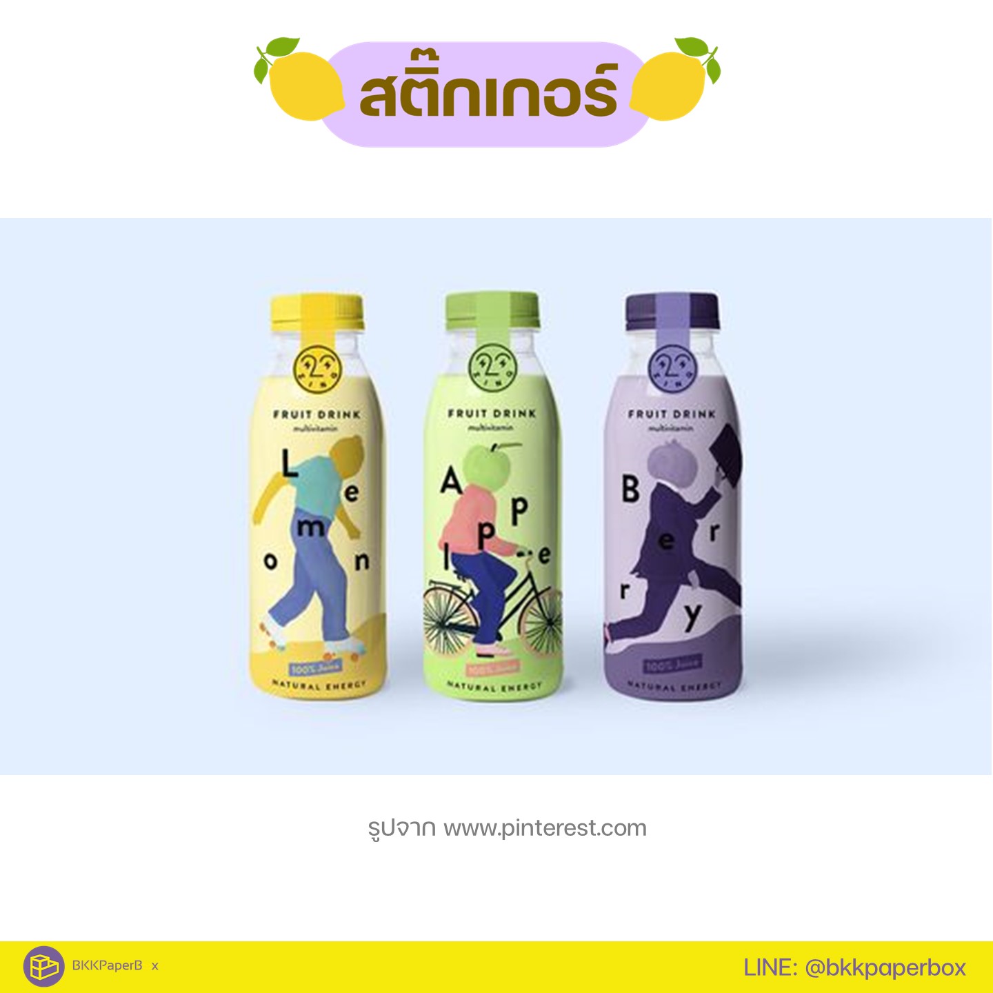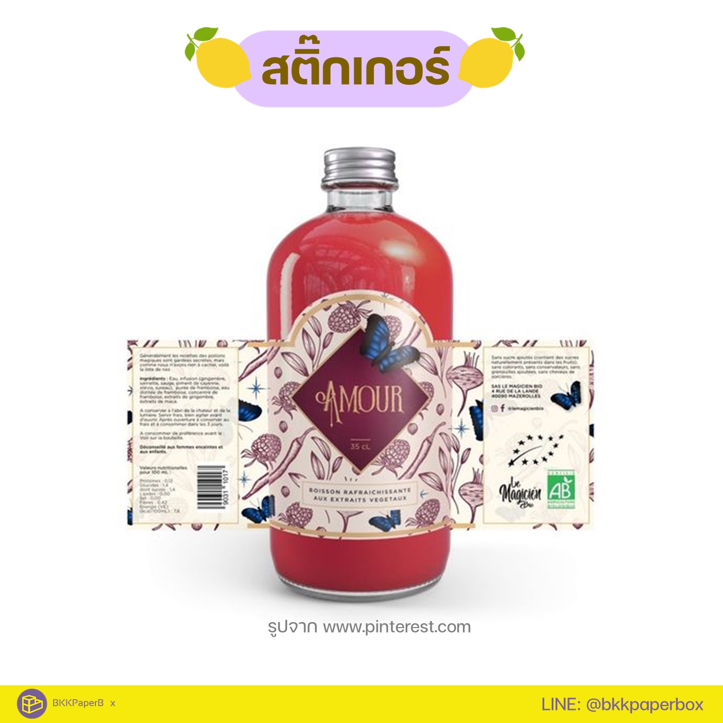 มีทั้งแปะรอบขวด แปะเฉพาะด้านหน้าขวด หรือ ไดคัทเป็นลายกราฟิก สามารถใส่ข้อมูลสินค้าได้ เช่น ส่วนประกอบ วิธีการรับประทาน เลข อย.  ช่องทางการติดต่อต่างๆ เช่น ใส่ QR code Line ชื่อ-ที่อยู่ผู้ผลิต เบอร์โทรติดต่อ หรือใส่เป็น story ของแบรนด์ก็ได้ค่ะ เพื่อเล่าที่มาที่ไปของตัวผลิตภัณฑ์ทำให้แบรนด์มีความน่าสนใจมากขึ้นด้วยค่ะ