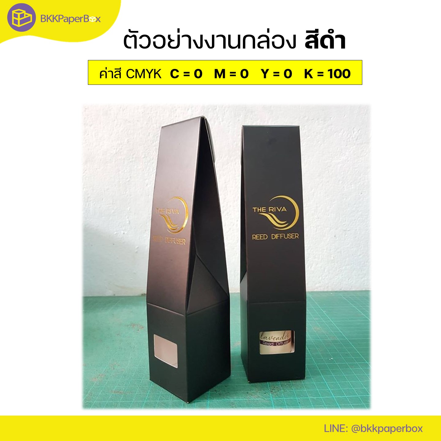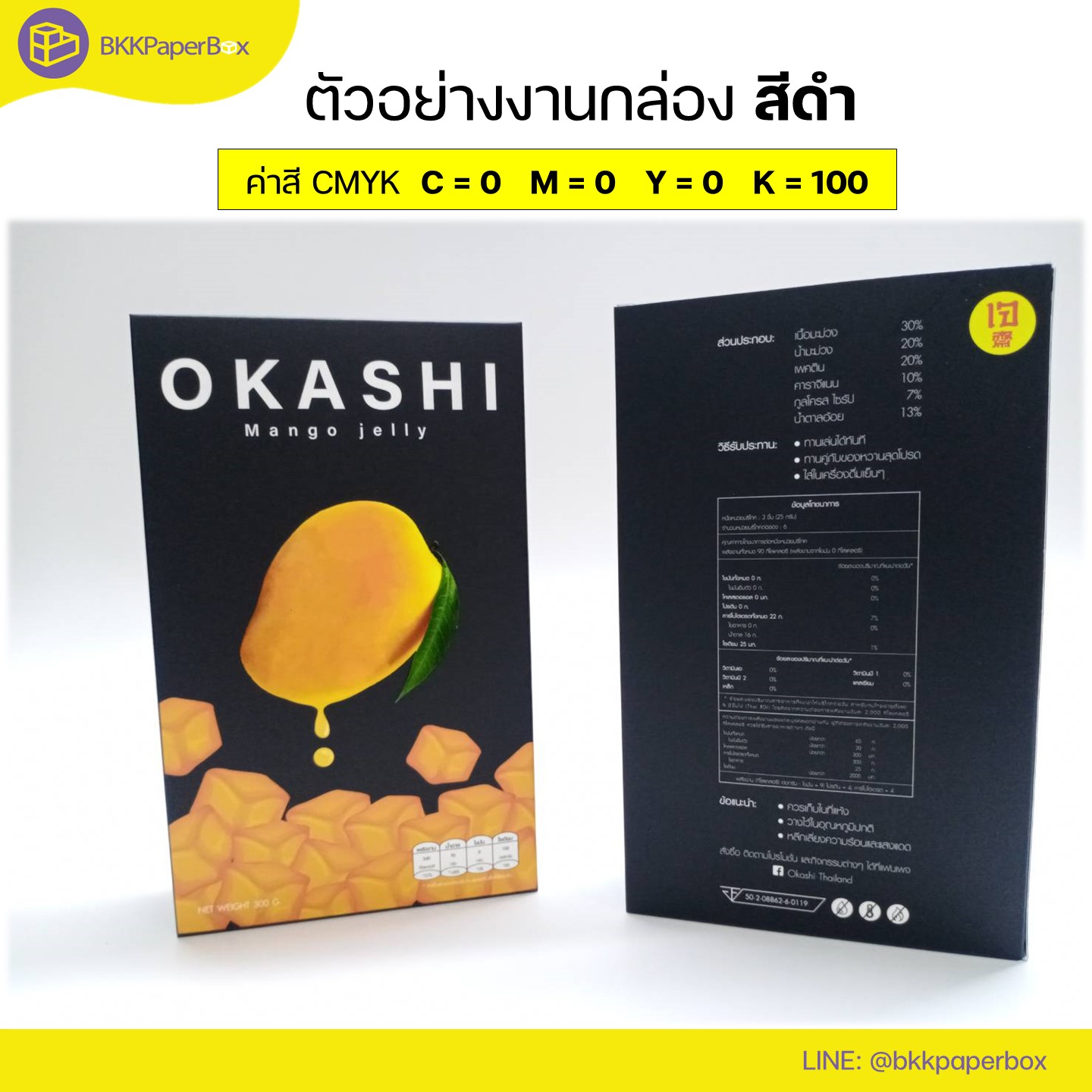 ลองนำวิธีที่ BKKPaperBox แนะนำไปใช้กันดูนะคะ และด้านล่างนี้เป็นตัวอย่างงานพิมพ์กล่องที่ตั้งค่าสีดำ แบบที่ BKKPaperBox ใช้ คือ C = 0 / M = 0 / Y = 0 / K = 100