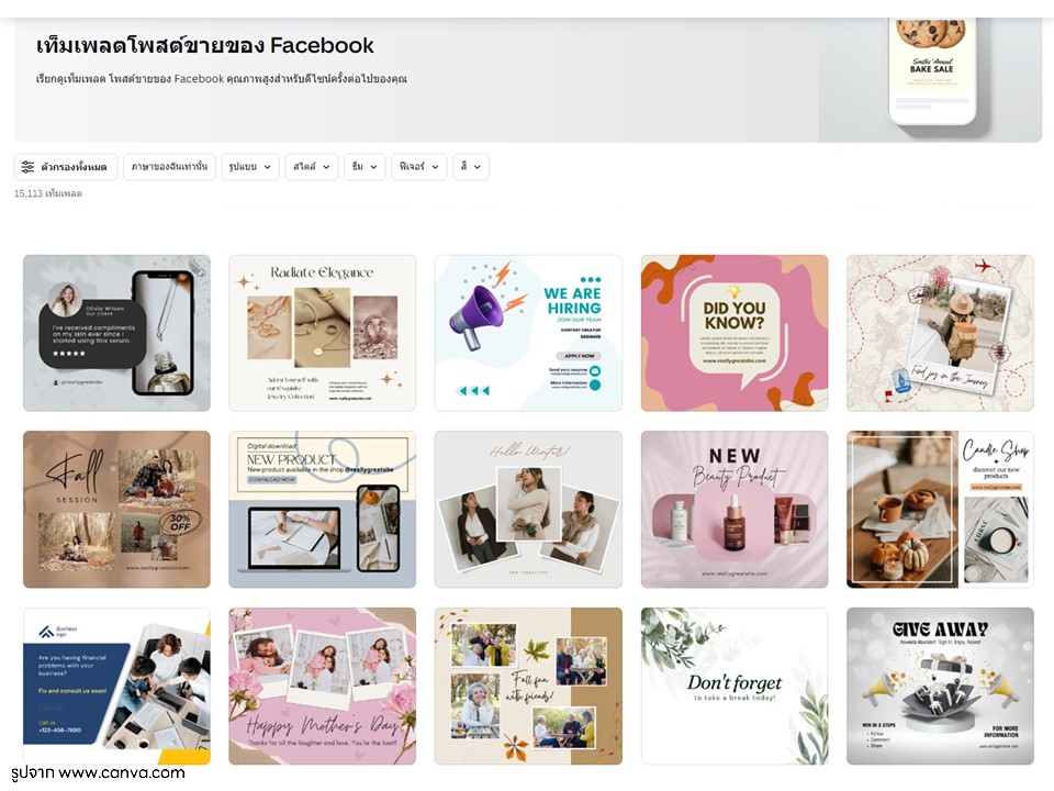 ตัวอย่าง : Template สำหรับโพสต์บน Facebook