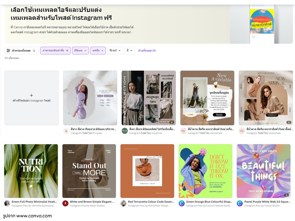 ตัวอย่าง : Template สำหรับโพสต์บน Instagram ทั้งรูปภาพและคลิป Reels