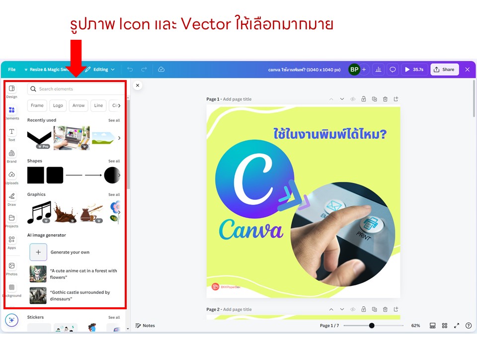 สำหรับผู้ใช้งานที่ต้องการตกแต่งเพิ่มลูกเล่น โดยเลือก Icon หรือ Vector ตกแต่งได้หลากหลาย สามารถพิมพ์ค้นหาเลือกแบบที่ต้องการได้ มีทั้งแบบฟรีและแบบเสียค่าใช้จ่ายยังมีเครื่องมือที่รองรับการเพิ่มรูปภาพของคุณ รวมถึงการปรับแต่งรูปภาพ ปรับโทนสี และใส่ฟิลเตอร์ที่คุณต้องการได้อย่างครบถ้วน