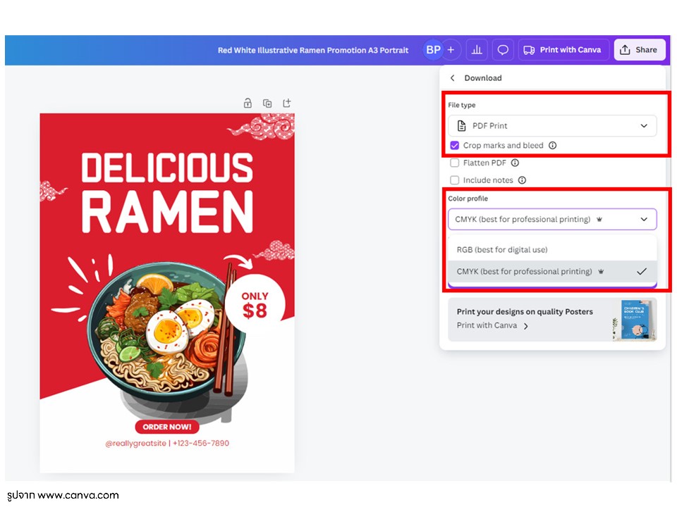 การเตรียมไฟล์งานจากโปรแกรม Canva สำหรับส่งโรงพิมพ์