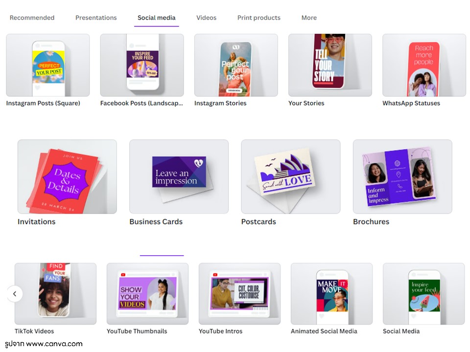 มีขนาดของภาพที่แนะนำให้ทันที ประหยัดเวลาในการหาขนาดภาพที่เหมาะสม เช่น โปสเตอร์, ใบปลิว, ใบประกาศ, โลโก้, สติ๊กเกอร์ ,Facebook , Instagram , Youtube, TikTok เป็นต้น