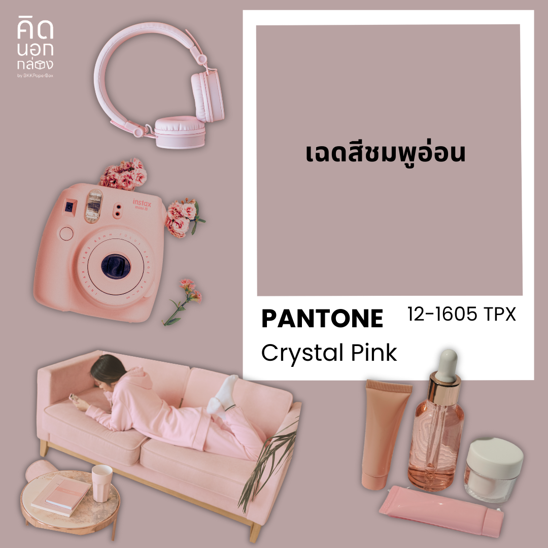 สี Crystal Pink แสดงถึงการยอมรับตัวตน มองเห็นความงามภายในจิตใจ นุ่มนวลและเรียบง่าย ใช้สื่อสารด้านอารมณ์เป็นหลัก จึงเป็นที่สีใช้ได้กับงานออกแบบทุกประเทภ ตั้งแต่เฟอร์นิเจอร์ Gadget อุปกรณ์พกพา สินค้าแฟชั่น สกินแคร์และน้ำหอม จนถึงงานออกแบบ AI บนสื่อดิจิทัล