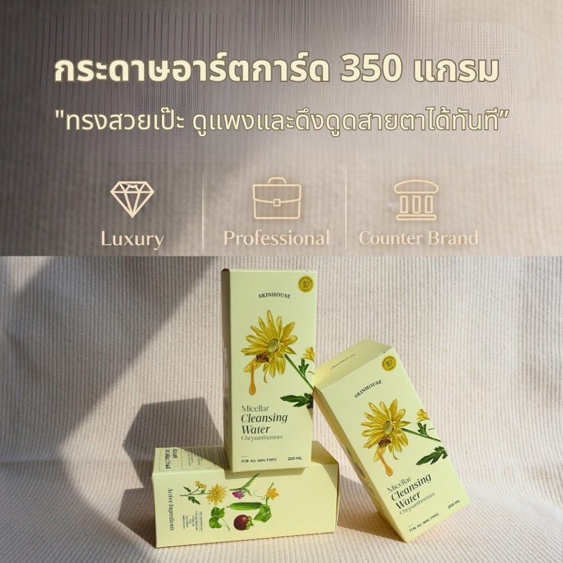 Expert Tip: กระดาษอาร์ตการ์ด 350 แกรม คือ "ผืนผ้าใบชั้นดี" สำหรับเทคนิคพิเศษทุกรูปแบบ ไม่ว่าจะเป็น Spot UV (เคลือบเงาเฉพาะจุด) หรือ ปั๊มนูน (Embossing) เพราะเนื้อกระดาษหนาพอที่จะรองรับแรงกดได้ดีโดยไม่ทำให้กล่องเสียทรงค่ะ
