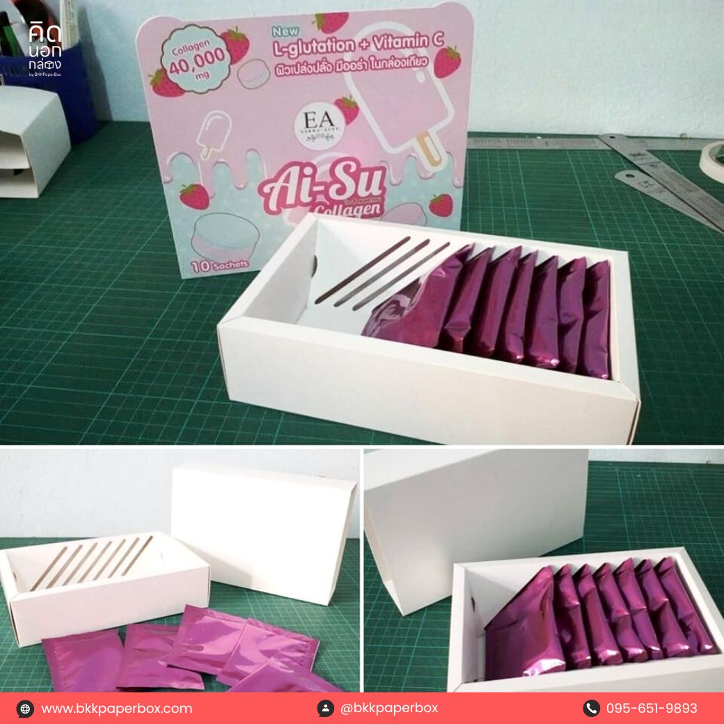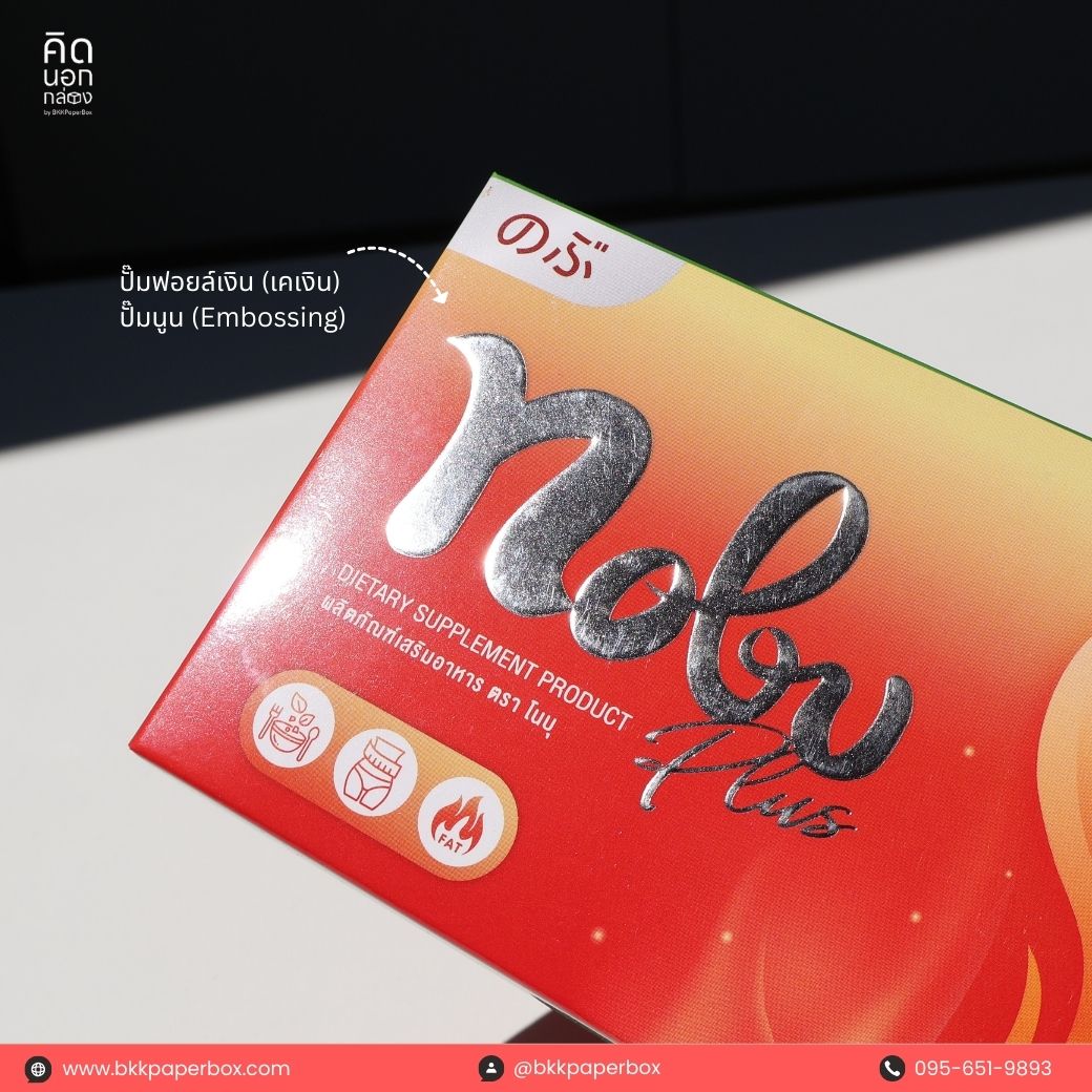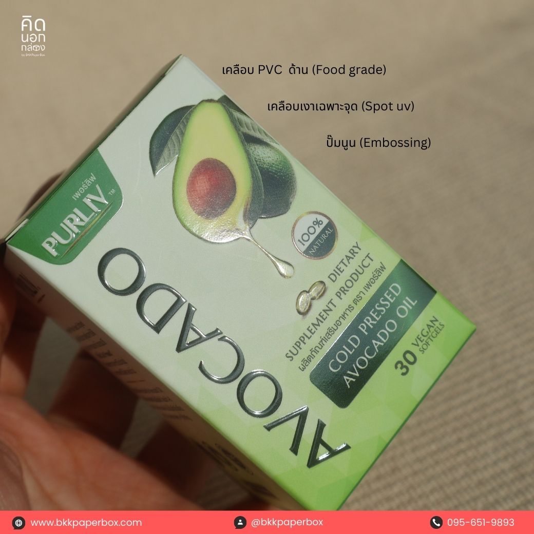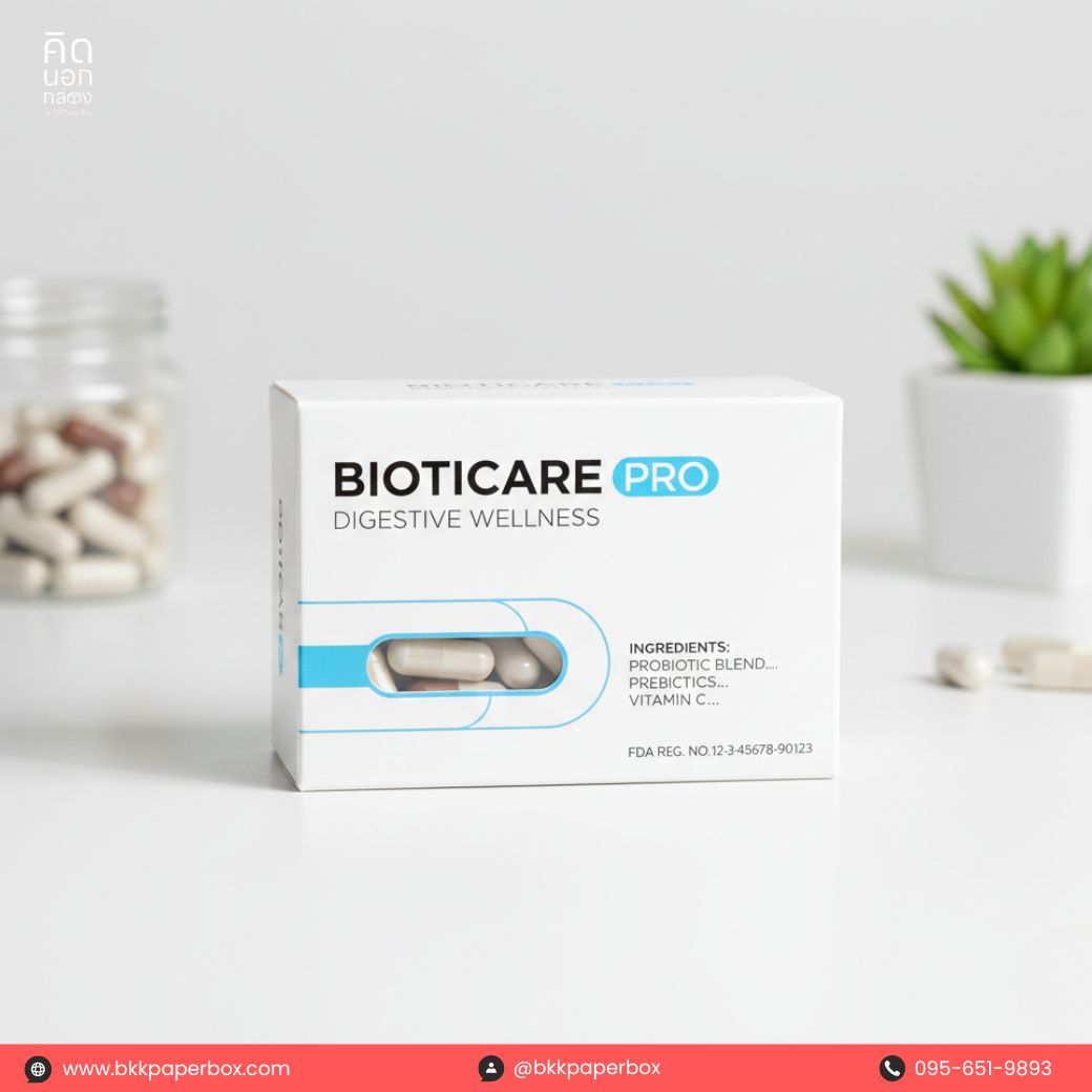 How to apply: นี่คือเหตุผลที่ BKKPaperBox แนะนำให้ลูกค้ากลุ่มอาหารเสริมเลือกใช้ กระดาษอาร์ตการ์ด 350 แกรม ขึ้นไป เพราะให้ความรู้สึกที่แน่น หนา และมั่นคงกว่า เมื่อเสริมด้วยเทคนิคการเคลือบผิวแบบ PVC ด้าน (Soft Touch) และเพิ่มลูกเล่นด้วย Spot UV (เคลือบเงาเฉพาะจุด) บริเวณชื่อสารสกัดสำคัญ จะช่วยสร้างมิติที่เหนือกว่าคู่แข่งที่ใช้กล่องกระดาษบางๆ ทันที